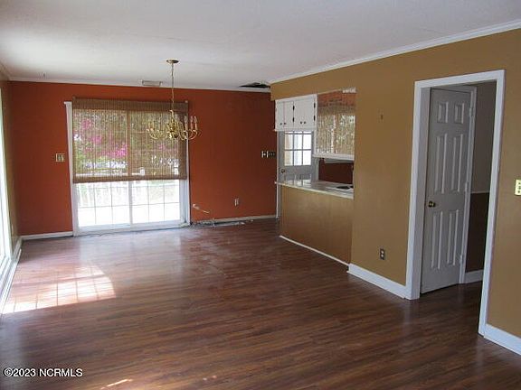 Three bedroom, one bath bungalow style home located in Trent Woods. Kitchen offers pantry. Dining area open to living room. Bright and cheery living room that features brick fireplace. Separate laundry room. One carport attached and a shed for extra storage. Enjoy your evenings entertaining or just relaxing on the NEW deck. Read a book or take a nap on the enclosed porch (not heated). Short drive to Downtown Historic New Bern, restaurants, medical facilities and shopping mall. This property may qualify for Seller Financing (Vendee).''