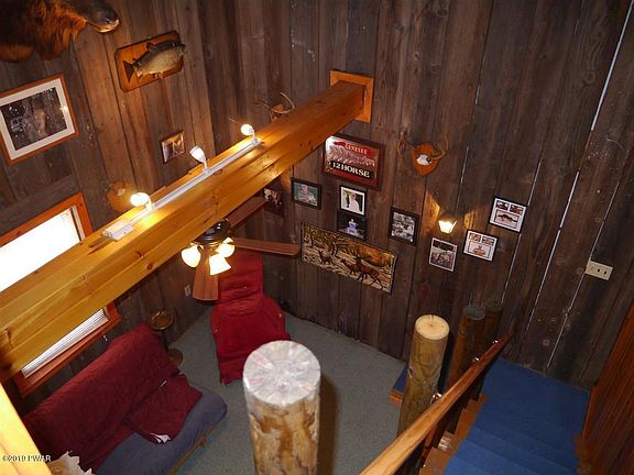 HUNTING CABIN - ADJOINS STATE GAME LANDS - Nestled on 2.75 acres is this rustic home offers open floor plan with a huge 24x21 bedroom with bunks. Kitchen/living room area, expansive deck, front porch and full basement.