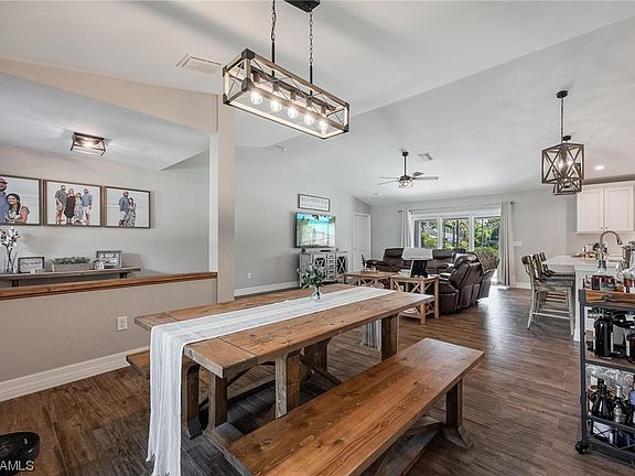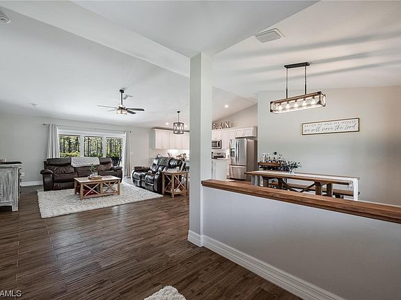 Located in Alva, Florida - built in 2021, tons of upgrades and half an acre with privacy? YOU'RE NOT GOING TO WANT TO MISS THIS ONE! The open concept floor plan with split bedrooms offers plenty of space for your family and guests. The light interior colors, white cabinetry, dark wood plank tile floors and farmhouse light fixtures is sure to make you fall in love the moment you step through the front door! The kitchen features custom cabinets with ample storage, quartz counter tops, stainless steel appliances and a walk in pantry. There is no shortage of counter space here! Enjoy meals at the kitchen island or in the dedicated dining room. The spacious master suite features dual closets, separate vanities and a large walk in shower. On the other side of the home there are two additional guest rooms and a full bathroom. Not to mention the dedicated laundry room that you're sure to be thankful for! The extended back patio is ideal for those cool summer nights where you can sit and watch the animals or kids play! There is plenty of room to run and explore! Whole house reverse osmosis system, impact windows and doors, irrigation, security system - this property checks all the boxes!