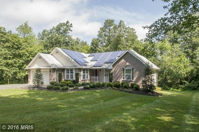 3BR/3BA Rancher Situated on 3.8 Acres..Gorgeous Paver Walkway to Welcoming Front Porch..Gleaming HW Floors..LR/DR Combo w/ Cathedral Ceiling & WB Stove w/ Brick Surround..Eat-in Kitchen w/ Granite Counters, Crown Molding & SS Appliances..Master BR w/ Cathedral Ceiling, Walk-in Closet & Attached BA..Finished Walk-out LL w/ Full BA, Possible 4th BR, Wet Bar & WB Stove w/Stone Surround..Solar Panels