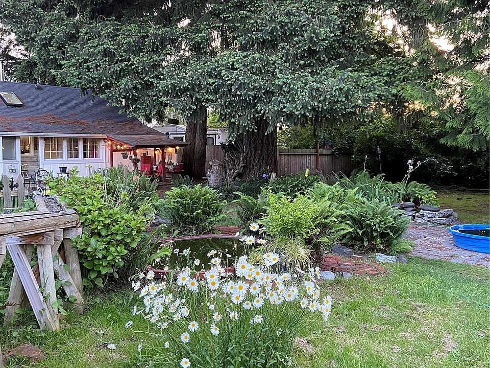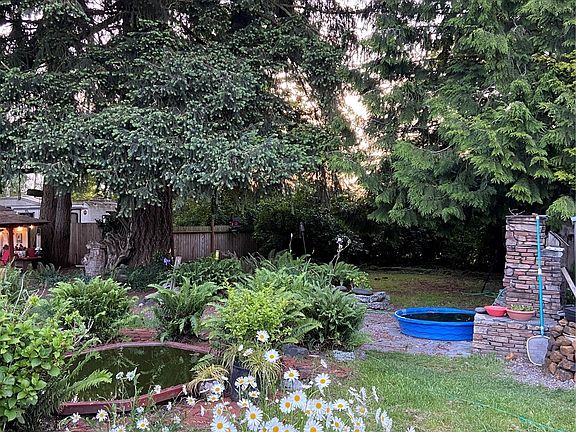The home is beautiful inside and out with lots and lots of windows and full of charm. You won't find another one like it very unique! The .6 acre is full of plants, trees and flowers. It has a large pond and gazebo, the storage units are made to look like an old western town. It has an outdoor fireplace and a fire pit. The detached garage is over 700 sq ft with several other outbuildings. A new roof was installed in 2017, a 6 ft cedar fence in 2019. The home is totally private. It was rezoned in 2022 to M-1 and has many possibilities , home business or commercial check with the city for ideas and verification. It is a great place for entertaining. Seller is a WA state RE Broker.