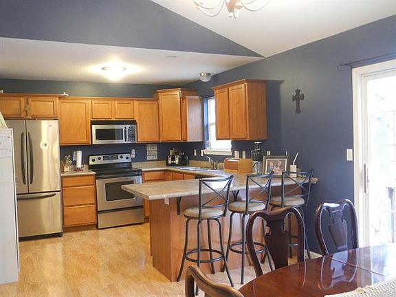 Amazing space within this split foyer! Huge and open living room w vaulted ceiling and fireplace that extends into dining room and kitchen with all stainless appliances conveying. Master bedroom w tray ceiling and full bath with walk-in closet, large family room, utility room and 1 2 bath on lower level. Privacy fenced yard w deck and stairs down to yard for backyard entertainment. Subdivision includes use of small lake area just blocks away. Great access for Hwy 63 and I-70.