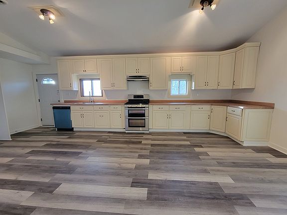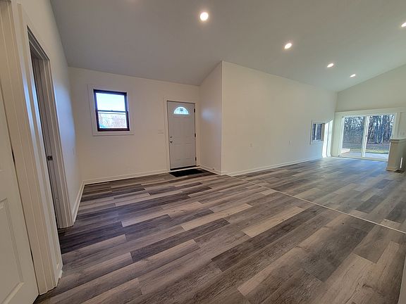 The inside doesn't match the outside on this beauty! Beautifully updated home, 3 bedrooms, 2.5 baths, vaulted ceilings, sitting on just over an acre, approximately 1.14 ac, with a large pole building, and a small garden shed too! The bathroom sizes are 13x5 for one of them, the 2nd one is 9x7, and the 1/2 bath is in the master bedroom on the upper level is approximately 4x4. Kitchen includes stove and dishwasher. All of the flooring is new and home is all drywall and lots of recessed lighting, all new light fixtures, etc. Off the living room is a utility area in the basement where the sump pump and water heater are. The Furnace is on the main level tucked away in a closet. There are vaulted ceilings throughout the home and they are approximately 13' high. In the dining area there is a closet/pantry. Sliding glass doors off the living room lead to a small wrap around deck on one portion of the southeast side of the home. There is also a small deck on the west side of the home next the west door there.