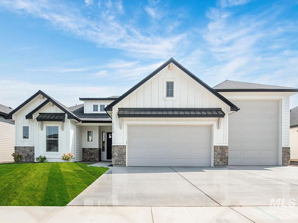 Blinds, fridge, AND washer and dryer included?! In NEW CONSTRUCTION?! Welcome to the stunning custom Arcadia RV by Tresidio Homes, offering an east facing view with rare privacy & no rear neighbors! This gorgeous single-level home is filled with high-end finishes and thoughtful design. Soaring 10’ ceilings with 8’ doors and an expanded coffered and beamed ceiling in the great room frame a beautiful stone fireplace, creating a grand yet inviting atmosphere. The spacious layout features four bedrooms and three full baths, including a serene master suite with freestanding tub and full tile shower, plus a private guest suite with its own bath. The kitchen showcases ceiling-height cabinetry, quartz countertops, Bosch appliances, and a Bosch refrigerator. A true RV garage with 12’ wide by 14’ tall door accommodates toys up to 39’ long! Lugarno Terra has a clubhouse, pool, and pickle ball courts on the way! Fantastic Kuna location with easy access to shopping, dining, groceries, and I-84. Photos of actual home.