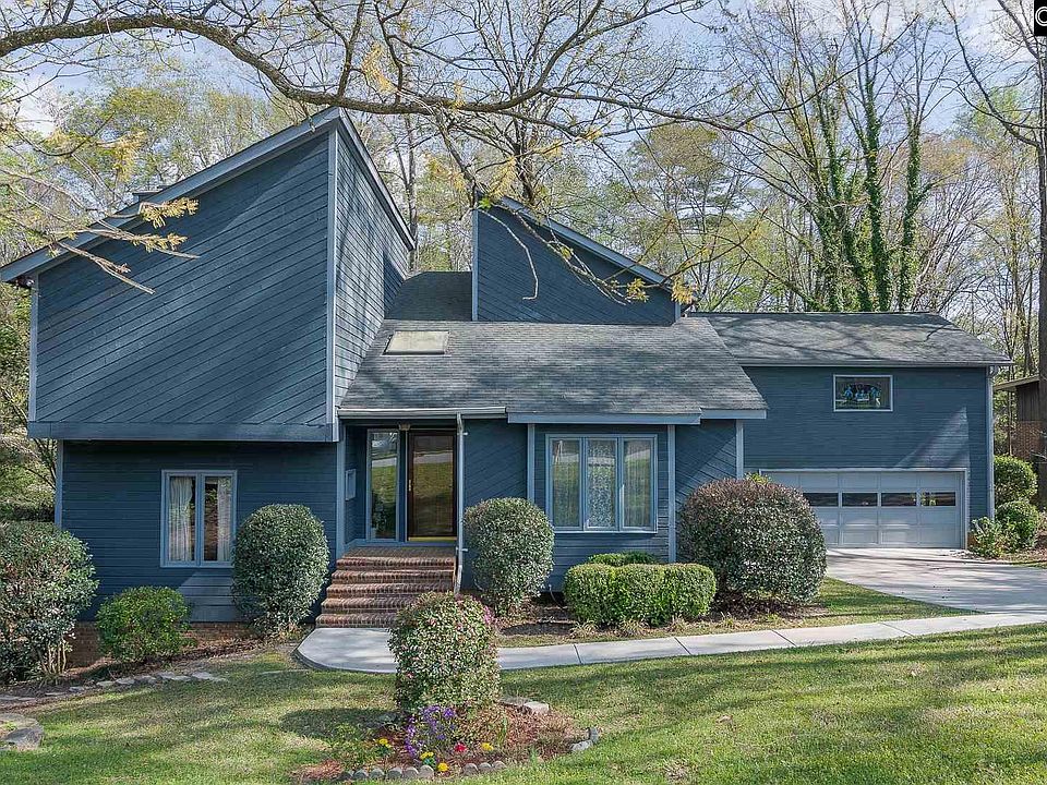 Unique contemporary design nestled into a beautifully wooded large lot, gives you a mountain like feel! The multilevel home with large windows throughout brings the outdoors in. Enjoy the screened porch and huge deck overlooking this very quiet, natural setting. 3 bedrooms plus a large bonus room with walk-in closet and built-in bookshelves. Sunken living room with vaulted ceiling, formal dining room, cozy den with fireplace and wetbar. Kitchen breakfast area with beautiful views of the private yard. Walk to the adjacent park! Neighborhood pool and tennis are available for a separate fee. This great neighborhood is just minutes to Lexington Hospital, I-26 and I-20 or a short drive to downtown Columbia or Lexington.