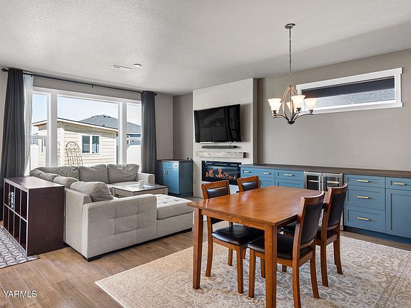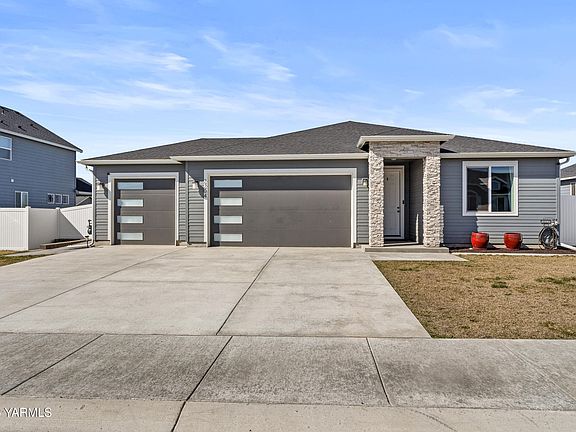 This beautiful home built in 2021 is located in a desirable Moxee neighborhood. There are additional upgrades beyond it's original already exceptional construction, from a fully landscaped backyard, gutters, storage shed, curbing, mini split in the garage and built in cabinets in the great room/ dining space. It's modern open floor plan provides a spacious and inviting living area. Custom built-ins unite the living room and dining area and provide a generous amount of storage. The feature wall has alinear electric fireplace and floating mantle which are stunning. The kitchen features stainless appliances, quartz counter tops and an amazing herringbone backsplash. Stepping out onto the back patio you will be in awe of this professionally landscaped oasis.. It is so well thought out with both appeal and function in mind featuring a beautiful retaining wall planter as the focus, raised beds for gardening, a newer shed area for yard equipment, a paver walkway entering the back yard from the front gate and curbing around the entire space. Its truly a wonderful place to gather. The 3 car garage offers that extra space for a workout area or for a hobbyist's projects and a mini-split was installed for comfort year round. This amazing 3 bedroom 2 bath home is a must see. Call today for a showing!