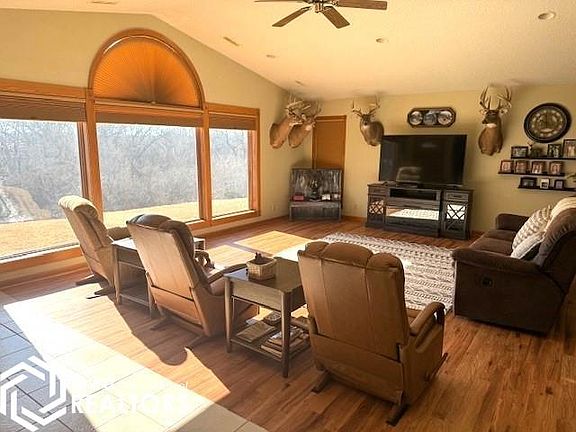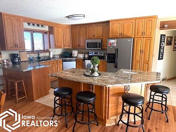 This beautiful ranch home is located just outside of Algona on a paved road and sits on approximately 10 acres. With complete one level living, this can easily be your forever home. This property offers a nice kitchen with large center island- perfect for entertaining, dining room, spacious family room with high ceilings with a large window overlooking the wooded area, 3 or 4 bedrooms, 2 spacious full bathrooms and the laundry. This property also has a large 24 x 30 machine shed/double detached garage. Sitting back off the road for privacy, this is a perfect family home!