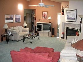 This well-built, one owner, custom rambler is in pefect condition & located in a gorgeous private setting with a beautiful, manicured yard & large patio. Tile entry takes you into the great room with vaulted ceilings, skylight & fireplace. Dining area, kitchen with tile floor & counter, 2 bedrooms + den/office. Master with walk in closet, 3/4 bath with tile counters. Lots of extra storage, furnace has electronic air filter, garage with lots of shelving. Homeowners dues $35 per year.