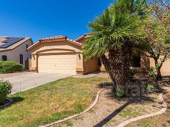 Awesome 4 bedroom, 2 bath home in Gilbert Ranch. This fantastic layout offers two separate living and dining areas, and a 4th bedroom that can also be used as a den. The home has upgrades throughout - custom paint, wood blinds, tile, vaulted ceiling in the common areas, solar hot water heater, sunscreens, and cabinets/sink in the garage. The kitchen offers an open layout with cherry cabinets, granite countertops, black appliances (including refrigerator), and pantry. The backyard is so nice - covered patio, built-in BBQ, fenced pool, shed, RV gate and grass lawn. Your clients will love this home! 1.5% rental tax due monthly