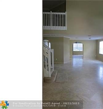 Marble floors throughout first floor (including bathroom and laundry room), two story living room, storage area. Master bedroom has a sitting room, two walk in closets, roman tub, dual vanities and water closet with toilet and bidet. Upsetairs secondary bathroom has dual vanities, lien closet and and door dividing one vanity from the other. Downstairs there's a cabana bathroom with shower. Staircase leads to a loft space at the top. Masonary covered patio, large lot, with palm trees and lake view. Crown molding throughout home.