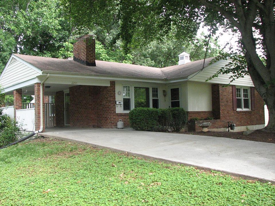 A little gem looking for a new owner! Quietly nestled with cute street appeal, this 4 bedroom brick rancher allows for a few projects while still offering comfortable living. Hardwood floors, new vinyl in kitchen, baths, and lower level. Two fireplace in living room and den, small sunroom on main level overlooking a wooded barrier on rear of lot. Full basement with finished den, bedroom, bath, and still offers a large workshop or storage area. Carport can accommodate car or can be a great summer porch!