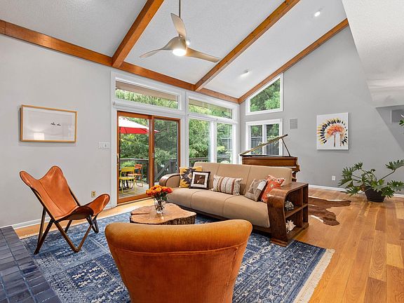 Oasis in the city! Enjoy vacation views every day... RARE waterfront in the heart of Raleigh. This mid century modern offers lots of natural light and an amazing mesh with nature and unique architecture throughout. Soak in the sun by the lake or find some shade on the multi level deck with built in seating... surrounded with lush landscaping featuring Japanese maples, a garden, koi pond w/ waterfall, and more! Entertain guests in multiple areas that boast floor to ceiling windows, vaulted ceilings, and amazing lake views! Cold outside... take advantage of the oversized doubled sided fireplace or patio heater. Multiple spots to enjoy the peace and quiet of lake life, including your own dock... kayaks and fishing recommended! Roof and HVAC units recently replaced along with many other updates(see sheet). 4th bedroom could make a great office, workshop has space and plumbing to create a true master suite. Spacious rooms and lots of storage! NO CITY TAXES! Minutes to downtown, North Hills, hospitals, and all amenities and easy access to 40/440/US1/64/264. This one has it all... welcome home!
