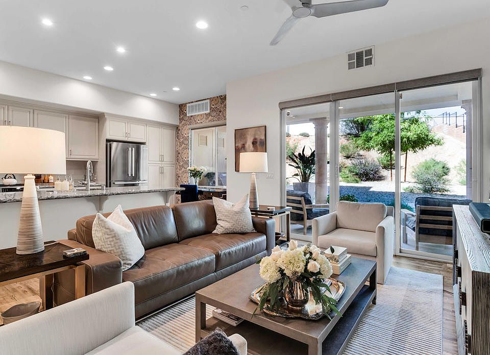 Nestled within the coveted Villa Portofino community, this meticulously upgraded condo showcases a premium living experience. Offering an exceptional location, with modern upgrades, in the highly desirable Sorrento - Vista Cielo Plan. As you step inside, the open floor plan immediately captivates with its fresh and contemporary ambiance. The newly updated lighting fixtures illuminate the space, creating an inviting atmosphere throughout. This two-bedroom, two-bathroom residence also features a dedicated office, making it ideal for full-time living or as a splendid vacation retreat. The recent renovations have elevated its appeal, ensuring a luxurious and comfortable lifestyle. The kitchen boasts granite countertops and a stylish backsplash that beautifully complements the new appliances, providing a perfect setting for culinary adventures. In addition to the kitchen, the upgraded flooring throughout the home adds elegance and sophistication to every room. The bathrooms have been transformed into spa-like sanctuaries, featuring modern bathroom mirrors, floor-to-ceiling tiles in the showers, and new hardware that exudes luxury and relaxation. One notable feature of this condo is its energy efficiency, thanks to the owned solar panels, which not only reduce your carbon footprint but also minimize utility costs. Some additional improvements include the all new ADT security and nest system, European kitchen appliances, lighting, and paint throughout.