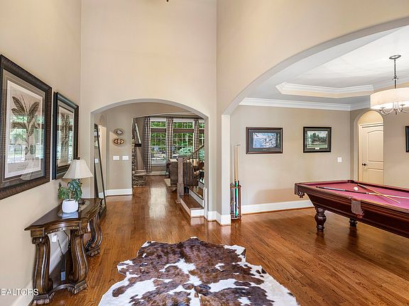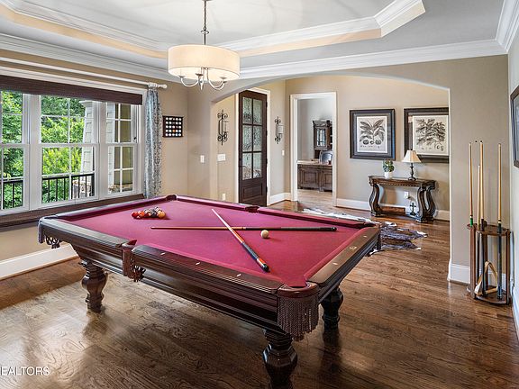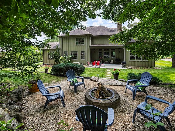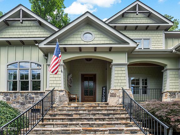 Located in Covered Bridge in the heart of Hardin Valley, this craftsman style home of stone and hardie board rests among beautiful mature trees and tasteful landscaping. Up the stone steps to the covered front porch, guests are welcomed into the foyer where the eye is initially attracted to arched door frames and lovely hardwood floors. Flanking the entry is the current game room with a tray ceiling and could easily be converted to additional living space while across the hall lies a home office with a vaulted ceiling and a set of three windows allowing lots of light. A spacious room for living at the back of the home has a stack stone fireplace, built-ins, and oversized windows for ample natural light. A large kitchen awaits for cooking and entertaining with breakfast bar, spacious island, two sinks, gas cooktop, pot filler, stainless appliances and ample counter space and cabinetry for food storage, prep and serving! Off of the kitchen is the current dining room with a vaulted ceiling, more natural light and ample room for sideboards and hutches. The primary suite has private access to the back patio and an attached bath with glass walk-in shower, dual vanities, and walk-in closet. The second level offers a bonus room for additional living space perfect for movie or game night along with the four remaining bedrooms and two baths to complete this upper level. Outdoor space can be enjoyed on the partially covered back patio where there is room for dining, relaxing and grilling and the firepit is the perfect place to enjoy a cool evening or roast marshmallows on a warm summer night.