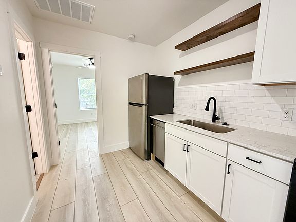 Receive FREE RENT-Owner offering a rental rebate with a 12-18 month lease agreement! Be the first to occupy this fully renovated one bedroom, one bath second story rental near popular downtown New Braunfels. This fully upgraded multi-family unit is ready for move in! Beautiful Castlewood oak laminate flooring throughout. Kitchen features gorgeous granite countertops & white ceramic subway tile backsplash. Upgraded kitchen faucet and hardware on cabinets & drawers, espresso floating shelves for extra storage. Kitchen complete with brand new stainless appliances including Fridge, Microwave, Range & Dishwasher. This residence offers one full bath with a stylish tile stand up shower featuring a luxury shower head. Generous Walk-in closet in bedroom with window for natural light. Central heat & AC. Fresh sod installed on site. Washer & dryer access onsite. Garage parking & Covered parking available for an additional monthly fee, while supplies last. Tenant responsible for utilities. Renters insurance required. Don't miss this opportunity! Reach out today to schedule a tour and claim your move-in rebate! Pets are a case by case basis, depending on age, weight, and breed.