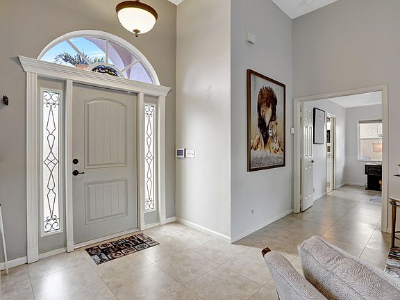 Renovated, impeccably and well maintained waterfront home. With a roof installed in July 2019, and both the A/C and hot water heater replaced in 2017, this home is not only aesthetically pleasing but also exceptionally well-maintained. Its interior features an inviting neutral decor. The spacious layout includes 12-foot ceilings without the unsightly popcorn texture, and it's adorned with 20'' x 20'' tile throughout. The kitchen is graced by a Solatube, which enhances the influx of natural light. Outside, the private backyard is a haven, showcasing a 750 Sq Ft screened patio surrounded by a fenced yard that overlooks a tranquil lake. Enjoy the added benefit of no rear neighbors, and the cul-de-sac street, complete with sidewalks, is perfect for families with children. This home is in the. highly desirable Boca Winds community. This community has 2 pools, (one heated in the winter), tennis courts, basketball courts, and tot lots throughout the neighborhood. There is a 2.5 mile walking trail in Boca Winds. Waters Edge Elementary School, Loggers Run Middle School, and West Boca High School are all A rated and within walking distance.
