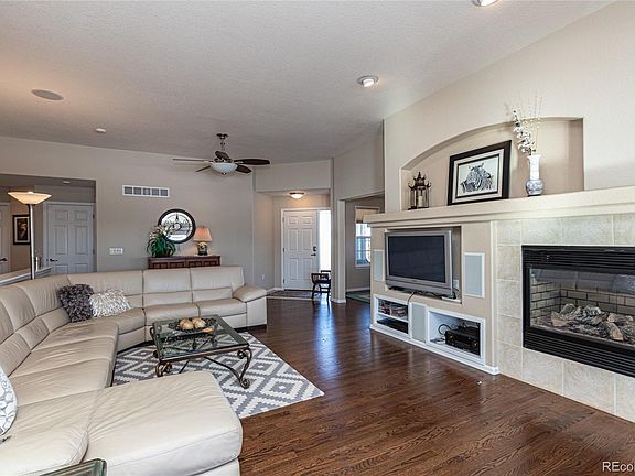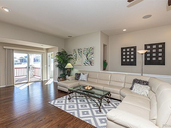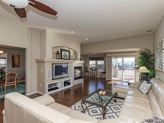 Welcome to an impeccable and elegant Ranch home located on the 13th Fairway in desirable Heritage Eagle Bend gated community! This spacious and extraordinarily well cared for 3-bedroom features a wonderful open floor plan with 12 ft ceilings on the main, gleaming hardwood floors on living/dining rooms & kitchen floors, upgraded carpet, gas fireplace in living room with built-ins & surround sound system/speakers. The kitchen has been completely remodeled and features Hickory cabinets, Granite counters, composite Granite sink, custom tile backsplash, pantry, recessed lights, Black Stainless LG appliances with gas cooktop & double ovens (one a convection oven). From the kitchen and living room you have spectacular views of the expansive golf course with a southern exposure. Enjoy relaxing or entertaining on the upper & lower decks most of the year. The spacious main floor Master suite is also south-facing with plentiful sunlight; it offers tall ceilings, plush carpet, a large walk-in closet and en-suite 3/4 tiled bath with seated shower. A second bedroom is located on the main floor and full bath; laundry is on main off the garage. The walkout basement is 100% finished featuring an ample family room with access to the deck & barbeque area, bedroom, full bath, bonus room for crafts/hobbies or workout room, and a storage/mechanical room. From here you are steps to the golf course! You'll have time to enjoy the great outdoors as the HOA handles mowing, exterior painting, snow shoveling & tree trimming. Updates: New impact resistant roof 2019, upgraded AC compressor, new furnace blower motor with lifetime warranty, gas hookup for grill. And you have so many amenities at your fingertips--a clubhouse with full service restaurant, game rooms, fitness center, tennis courts, bocce & pickle ball courts and one of the premier 18-hole golf courses in Colorado. This home is located in one of the most sought after locations in HEB. Welcome to a perfect home in a great community!