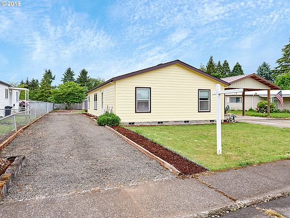 Palm Harbor Energy Efficient manufactured home on private land, 1 yr home warranty, cul-de-sac, .24 acre, large garden space, garage/shop, RV parking, A/C, 3 bedrooms, 2 full baths, vaulted ceiling, soaking tub, large pantry, breakfast bar, storage, 2 sheds. HOA dues include community pool, party room and water bill. Minutes away from I5, I205, and the metro area. Upgraded heat pump, forced air heating/cooling, Hepa air filter.