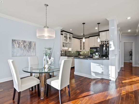 Updated townhome in sought after West Linn neighborhood with Mount Hood view! Natural light pours into this corner unit with floor to ceiling windows and it perfectly sits off the street for ample privacy. The floor plan boasts two en-suite bedrooms upstairs, including a large primary with walk-in closet and private deck where you can watch the sunrise over Mount Hood. The third room downstairs can be used as a bedroom or office. One of the only units to have water/sewer available in the garage allowing potential to move laundry and convert the half bath to a full. Other features include, crown moulding and wainscoting, hardwood floors, granite countertops, updated bathrooms, high ceilings, central vacuum, ample storage, and double garage. Plenty of outdoor living spaces with two decks and a landscaped courtyard. Venture down the street to the community pool or to the walking path where you can head to Tanner Creek Park, grab groceries at Safeway, or get coffee at Starbucks. All of the amenities of Historic Willamette Main Street are less than 2 miles away, including shops, restaurants, cafes and many seasonal events like the Farmer's Market.
