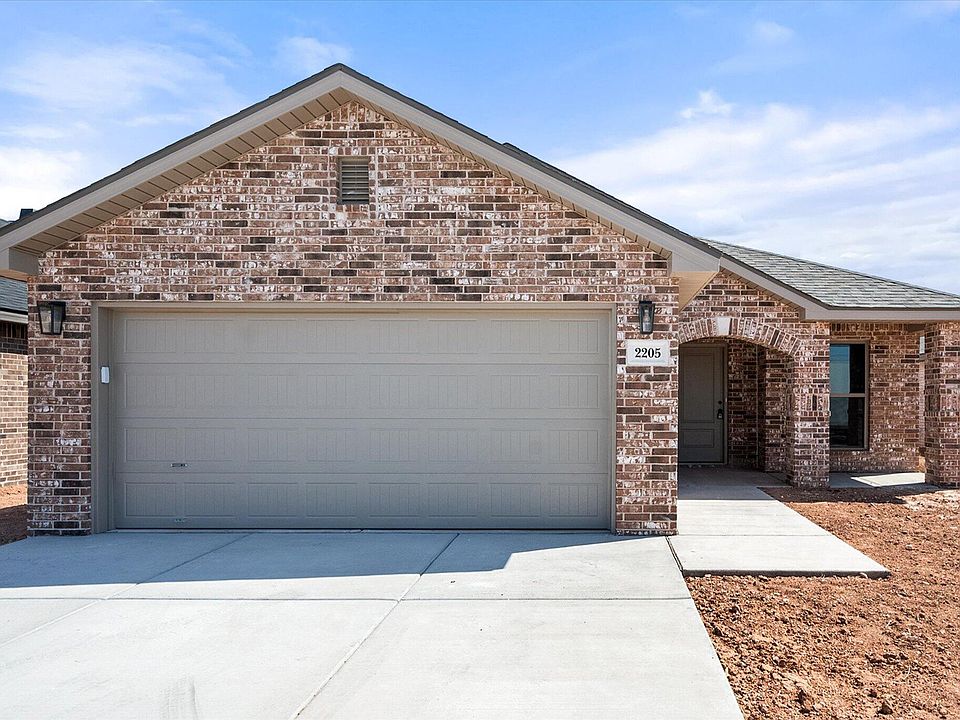 Buy NOW and get up to $12,000 FLEX CASH! This beautifully designed home showcases a full brick exterior with double columns framing a charming covered front porch. Inside, luxury vinyl plank flooring enhances the common areas, complementing the open-concept kitchen, living, and dining spaces. The kitchen features granite or quartz countertops, a spacious island with bar seating, stainless steel appliances, and an enclosed pantry.