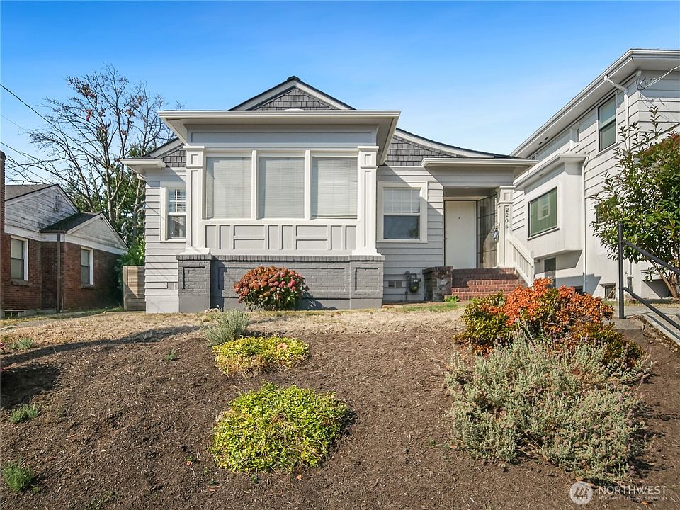 Step into timeless Seattle Charm 1918 classic offers 4 bedrooms plus a versatile flex room, 1.5 baths, and nearly 2,800 sq. ft. of living space. Original fir floors and century old details create warmth and character, while a newly updated kitchen blends modern convenience with historic elegance. Original features remain intact, complemented by thoughtful updates for today’s lifestyle. The main level showcases a formal living and dining room, a cozy parlor and eating space in the kitchen. 2 bedrooms, and a full bath. Upstairs, discover an additional bedroom or flex space. Entertain with ease on the open patio and the possibilities are endless with the outdoor structure.