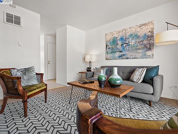 Located in the desirable Marina West, this second-floor, corner-unit condo features 3 beds, 2 baths and 1,060 sqft of light and bright living space. Fresh interior paint and new carpet throughout! Kitchen features white cabinetry and ample storage plus a separate dining area. Spacious primary with private ensuite, updated bathroom featuring tile enclosure and new vanity. In-unit laundry. Two dedicated parking spaces: a 1-car garage plus 1 assigned parking stall. Conveniently located with easy access to 880 freeway, BART, shopping at Marina Faire and New Sang Chong Market, restaurants, Oakland Airport, Kaiser Permanente Medical Center and much more! Walk to the famed San Leandro Marina, golf course and dog park. Enjoy miles of walking trails with gorgeous bay views. Enjoy the peaceful setting, sunsets and bay breeze from one of two private patios. Come see for yourself! Open house Sat/Sun 1-4pm