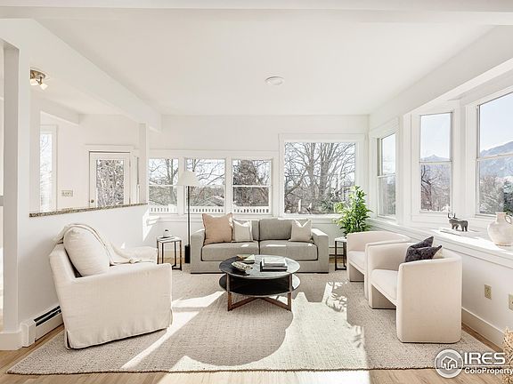 Sweeping views of the Flatirons unfurl from this charming Whittier residence. Enter into an open floorplan cascading w/ gorgeous new flooring and fresh wall color. Natural light streams into the living area through an array of vast windows showcasing picturesque views. The dining area extends into a stunning kitchen flaunting stainless steel appliances and glass display cabinetry. French doors open into a home office featuring built-in cabinetry. Relaxation awaits in a primary suite offering an outdoor deck, a walk-in closet and a serene bath. Each additional bedroom provides a bright haven w/ large windows. Vaulted ceilings w/ exposed wooden beams and skylights draw the eyes upward in a sun-filled flex space located above the two-car attached garage. Walkout lower level provides extra space for guests, lounging or home offices. Retreat outdoors to a fenced-in outdoor space w/ an expansive patio. Perfectly situated in Boulder, a desirable location offers easy access to Pearl Street Mall.