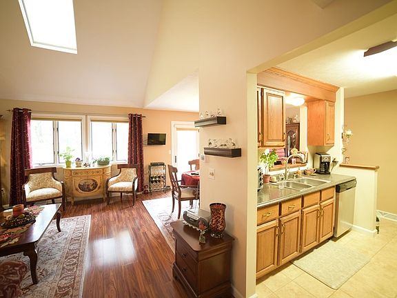OPEN HOUSE CANCELLED...Welcome to Woodcrest of Wilbraham Townhouse Condominiums. Quitely tucked away, this bright and spacious Townhouse with Three Full Levels of finished space offers a great open floor plan for carefree living. Immaculately maintained galley kitchen with custom oak cabinets and stainless steel appliances, two story living room with cathedral ceiling and skylight boasting plenty of sunshine, dining room with French doors leading out to a new composite deck with a Windsetter Awning, and half bath. Open oak stairwell leading to the second level includes a spacious master bedroom with large walk-in closet, a spacious 2nd bedroom and large full bath finishes off second level. As you descend to the lower level, you will be met with a large living area with acoustic style ceiling, plenty of closet space and custom built-ins, half bath and laundry area. Updates include new HVAC, Hot Water Heater, Boiler, bathroom fixtures, tiled bathtub/shower, and custom basement windows.