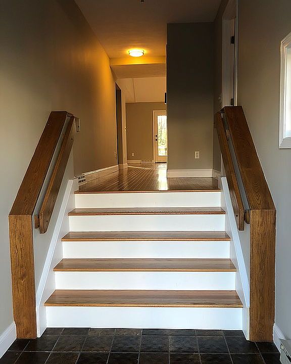 Woodcrest Condo For Sale. Unique END unit offering a private setting with attached garage and two additional, adjacent parking spaces assigned to condo. Cathedral ceilinging welcomes you into this bright, two bedroom, two bath home. Includes two double slider doors to newly constructed, double-sized trex deck. Kitchen updated with newer S/S Appliances. Granite counters in kitchen and full bath. Stone floor and Kohler fixtures in half bath. Premium hardwood floors with 6" moulding. Unit offers central vac. *HVAC and Hot Water systems updated in May 2021*. Includes front loading BOSH washer and dryer. Partially finished basement ready for expansion.