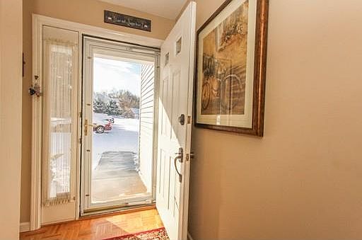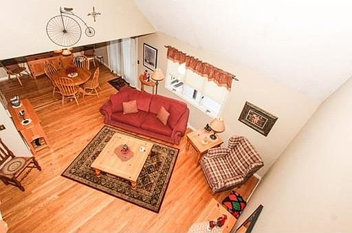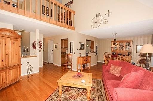 Enjoy the privacy of an end unit & convenience of condo living at the Woodcrest complex, unit boasts many custom features, impeccable condition, plenty of natural light w/its southern exposure & three levels of finished living space. First floor features hardwood flooring & open plan. Kitchen has granite tops, double bowl stainless under mount sink, new satin nickel faucet & wood cabinetry. Living area boasts two story cathedral ceiling w/skylight & adjacent dining area features newer french doors leading to outdoor deck- perfect spot for outdoor entertaining. Second floor has two large bedrooms, full bath and loft overlooking living room which could function as home office. Large master bedroom boasts walk in closet & double window w/custom built window seat. Finished walkout lower level offers almost 650 square feet of living space, half bath as well as access to patio. One car attached garage & two additional parking spaces add to the unit's easy living and appeal.