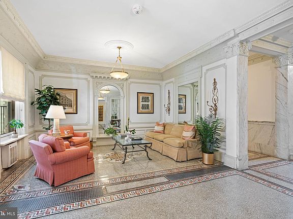 Discover a blend of historic charm and modern luxury in Kalorama's renowned California House. Constructed in 1905, this iconic Beaux Arts building features a meticulously maintained lobby adorned with beautiful period details and an atmosphere of sophisticated grandeur. This elegant and spacious unit is filled with natural sunlight and has been thoughtfully renovated to preserve its historical character. The gracious floor plan is perfect for entertaining and includes a large living room with oversized windows, a formal dining room, and a stylish office/den. The fully updated kitchen is well-appointed with marble countertops, a breakfast bar, extensive cabinetry, and high-end appliances. It opens to a comfortable family room with built-in bookshelves. The luxurious primary bedroom offers an attractive en-suite marble bathroom with a frameless glass shower, while the second bedroom features built-ins and access to another renovated bathroom. The unit also comes with easily accessed surface parking. Located within walking distance to Mitchell Park, Embassy Row, and Dupont Farmers Market, and just steps from two Metro stations, California House is perfectly positioned for urban living. Nearby attractions also include Georgetown, Rock Creek Park, and the White House.