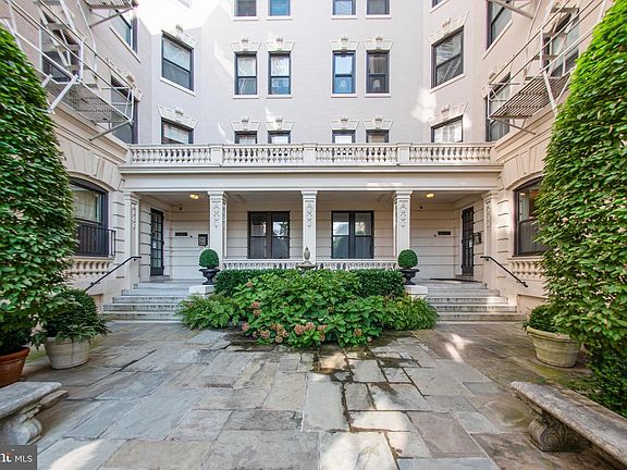 Opportunity is calling at the Iconic Beaux Arts California House. This upper level unit features views of the Washington Monument, period details throughout like classic millwork including original solid wood doors, Wood floors, brass hardware, carved oak front door, High ceilings, a granite hearth fireplace, architectural columns between the living and dining room and pocket doors with etched glass panels. This Turn of the century home measures almost 1500 Square feet square feet and includes in unit laundry, a reserved surface parking space(#18) and additional assigned storage on the building's lower level. The owner's bedroom has a walk-in closet and en-suite bath. A bright second Bedroom with excellent views , a second Bath and additional entry room provide plenty of living space or room to entertain. This Professionally managed pet friendly building is convenient to everything including the Corner market across the street and Redline metro. Don't miss the opportunity to turn this fresh blank canvas into your Kalorama Masterpiece!