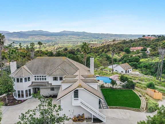 Sitting on just over 6 acres of rolling hills and breathtaking 280 degree southwest views, this serene hilltop location offers an opportunity to own a one of a kind, equestrian friendly property in north counties developing wine country. Within the 3300 sq ft freshly reimagined home by Maverick Design, you will find not only an elegant modern style and breathtaking views from all over the house, but 4 spacious bedrooms, 3.5 thoughtfully renovated baths, a dedicated office, a bonus room, and a 3 car garage with views as far as the eye can see from nearly all of the home. The outdoor entertainment and pool area is an enchanting space to watch the sunset and enjoy meals Al Fresco. With two paved entrances to the property for ease of access to the main house and the lower level RV garage and shop, a putting green surrounded by seasonal pond and multiple practice T boxes for the avid golfer AND the possibility to finish out the potential granny flat / ADU above the man garage this property offers unique attributes to fit many modern day buyers needs. There is plenty of room to create your own orchard or groves and with a little bit of creativity and personal touch, this extraordinary property can provide a lifetime of memories.