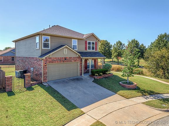 Discover this beautifully cared for 4-bedroom, 2½ bath home with a 2-car garage tucked away in a welcoming Broken Arrow community. Located on a cul-de-sac with an unobstructed view of the Broken Arrow Golf Course, the home includes spacious living areas with many special amenities. The kitchen features granite countertops, an island, generous counter space, and a breakfast area. The primary suite has its own private bath and 2 walk-in closets. The additional 3 bedrooms and open "play" area with nook, provide flexibility for family, visitors, or a home office. Wood blinds and Hunter ceiling fans are included throughout. Newly installed roof includes impact-resistant Class 4 shingles providing long-lasting protection. Enjoy outdoor living in the spacious backyard - perfect for relaxing, gardening or hosting weekend gatherings. The home has easy access to the neighborhood park, schools, shopping, and dining. Move-in ready, this Broken Arrow gem is waiting to welcome you home!