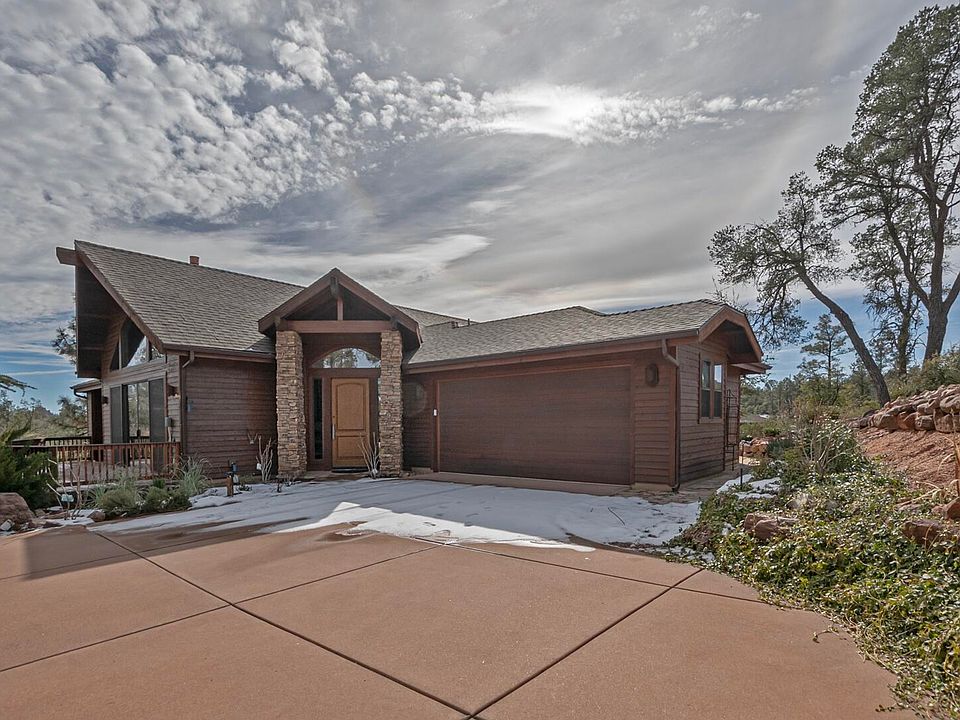 The best value in Chaparral Pines! This wooden exterior home features a huge front deck perfect for entertaining, large patio doors allow the natural light to come in. The great room has a grand floor to ceiling stone fireplace, beautiful wood flooring. The open kitchen includes an island range, new granite, beautiful cabinetry and stainless appliances. There is a half bath and laundry room with new washer and dryer. 3 large recently renovated bedrooms with the spacious master suite featuring access to front deck, a new shower and large walk-in closet all make this a great home at any price. There is another ensuite bedroom upstairs featuring a private deck and walk-in closet. The downstairs features a unique den with half bath and private deck and another ensuite bedroom with a walk-in closet and beautiful bath with tile shower two sinks and private commode. This space is perfect for privacy and/or entertaining. Other recent upgrades include new paint, flooring, countertops, upgraded bathrooms, and a new roof. The garage has epoxy flooring, and there's a door adjacent to the backyard patio. The property is nicely landscaped with drip systems to maintain the outdoor aesthetics. This home is priced $200,000 under appraisal. The sellers spent over $100,000 in renovations. At under $280 per sq ft, it is the best value in Chaparral Pines. There are new windows throughout and upgraded electric with pre-installed shut offs for sauna and hot tub and electrical service in garage for vehicle charging station. Sellers will provide home warranty to make it worry free. Don't miss this fine home at a great price.