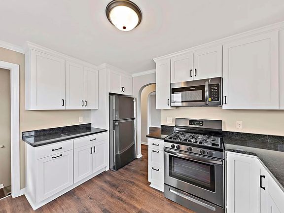 Cozy 2 bedroom home with beautiful back yard! Modern, updated kitchen features all new kitchen cabinets, countertops, and brand new appliances. Huge front room with picture window, perfect for entertaining or enjoying cozy coffee mornings. Newly finished flooring throughout home, including brand new carpets. Home also benefits from energy efficient windows, central air and heating, and driveway with plenty of space for off-street parking. Lease is month to month, rental review after a year.
