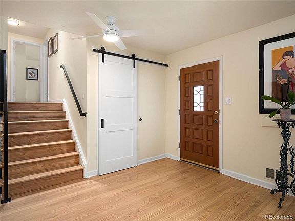 This beautiful home is situated on almost a 1/3-acre lot in the sought after Southglenn neighborhood and offers more than 2,100 finished square feet with three large bedrooms and 3 bathrooms. Upon entry you will take note of the gleaming refurbished oak floors expanding throughout the main and upper levels of the home. A south-facing bay window illuminates the front living room providing a welcoming ambiance. The newly installed barn door on the coat closet and new iron stair banisters gives this space a modern touch. A true entertainer’s dream, the kitchen is ideal for the inspired home chef with sleek granite countertops, stainless steel appliances to include a double oven, breakfast bar and large window overlooking the backyard. The primary bedroom with en-suite bath is a perfect retreat. Upstairs is also home to two additional bedrooms and a full hallway bath. Grab a delightful book or glass of wine and relax in the amazing, jetted tub. The finished lower level with gas fireplace provides additional living space, powder room and mud room with easy access to the oversized two car garage. Immerse yourself in the backyard oasis featuring a large, covered patio, perfect for gathering with friends or family, and the expansive fenced yard provides privacy and serenity. You will want to take note of the secured dog run – perfect for your furry friends! Central A/C, owned solar panels, plus a 50-Gallon Hot Water Heater provides all the comfort and conveniences you could want. This amazing home has so much to offer. A desirable school district, quick access to DTC, downtown, C-470, and walking distance to the shops and restaurants at the Streets of Southglenn as well as Goodson Recenter, Indoor Tennis Courts, Archery and the beautiful DeKoevend Park with trails that go on for miles – this location is truly unmatched.