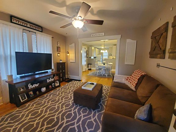Character abounds in this 2BR 1BA bungalow with inviting front porch! Step inside this well maintained home filled with charm offering original hardwood floors. Updates include: stylish kitchen, bathroom, garage door & opener, garage roof, gutters with leaf guards, newer concrete, privacy fenced back yard, & more! Seller is offering a 14mo home warranty through Home Warranty, Inc provided to new buyer at time of closing.