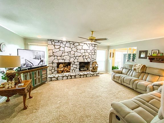 Located in convenient Jackson Heights subdivision. This is a large 3400+/- sq ft home that features 4 bedrooms and 2 1/2 bathrooms on main floor and a basement with two rooms used as bedrooms currently, one full bathroom, cedar closets in the two rooms, garage/shop area, freezer room, and large ventless gas log fireplaces on main floor and in the basement. The basement leads out to a fenced yard and a beautiful, well maintained pool. In the last year the windows, roof, gutters with leaf guards and oversized downspouts have been replaced, along with new siding. The motion lights on garage and porch are new, the showers on main floor are updated and beautiful, and new flooring in kitchen, dining room and office area. The kitchen cabinets are currently being rebuilt and repainted on one side of the kitchen with plans to install by the end of the month. The unfinished basement shop garage are heated and cooled. This home is sold as is and buyer to verify sq ft.