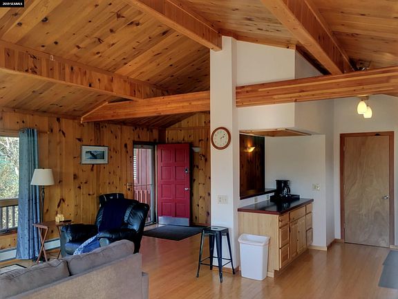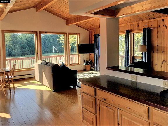 Come and see this beautiful 2 story single family home that has a first floor apartment. Extraordinary views of the Mendenhall River, the mountains, and a peek a boo view of the Mendenhall Glacier from this home. The bottom floor apartment has one bedroom, one bathroom and has been remodeled. The top floor has a large wrap deck, where you can enjoy the planes flying by and the activity on the river. The main home has an open layout with two bedrooms, one bathroom and lots of remodeling. The kitchen has handmade counter tops with purple heart trim. Nice large yard with a tire swing and a fenced area. This house can also be turned back into a single family home.