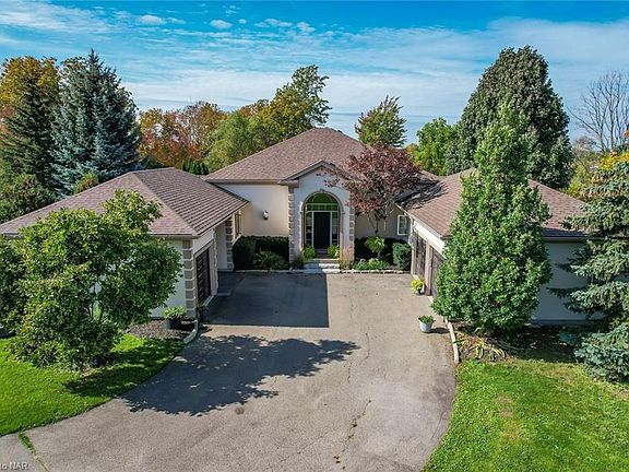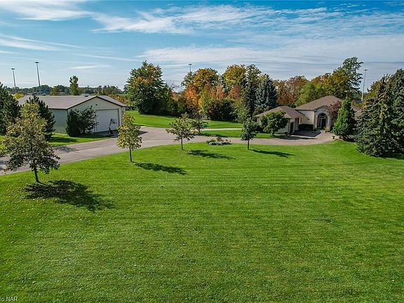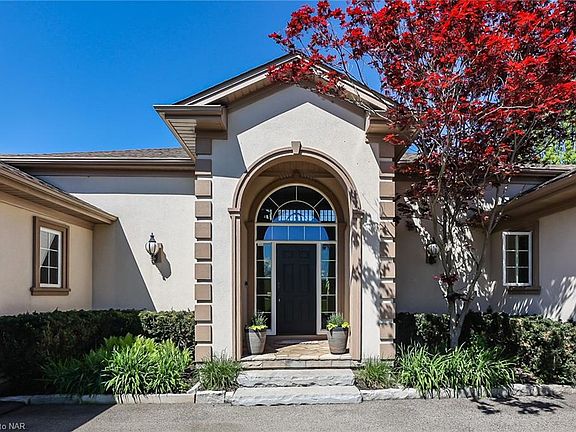 Unique estate property, situated on the town line of Niagara Falls / Niagara On The Lake Wine Country. This style of property and location is literally one of a kind and you will not find another like it in the region. Boasting 7 bedrooms 4 up 3 down and a huge den /office loft space. Finished top to bottom, this is a 2600 plus square foot California style stucco bungalow with an attached 3 car garage. The heated outbuilding is 4000 + square feet with multiple business offices and room for up to 11 cars. Instant QEW Highway access within 1 kilometer literally at the Niagara Falls Welcome sign ..as well as a 5 minute drive to Niagara on the Lake and the heart of wine country. Now located in the epicenter of new growth in Niagara you can get to the Stamford center shopping center within 4 minutes or less for daily groceries with multiple fruit stands along the way or direct access to the Factory outlet mall within 2 kilometers. The House has been totally remodeled from top to bottom with the most recent $20K on a new top of the line shingle roof with 25 year warranty. Over the past 10 years new Mennonite Hickory flooring is on the main level with a completely finished basement. Downstairs houses a built-in bar great for parties of all occasions it also has a huge playroom for kids or a movie theater. Washrooms have all been remodeled. Also replaced hot water tank 2017, furnace 2015,and air conditioning 2019. Spacious open concept kitchen with stunning brand new granite countertops with waterfall and breakfast bar. Gorgeous views and walkout to the new beautiful Muskoka room via double doors in the kitchen. This house was built to follow the sun from sunrise to sunset with very strategic windows. This house faces East for sunrises and the backyard faces West over the heated pool and hot tub for the most amazing sunsets which is viewable over the 12 acre property.