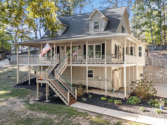 Welcome to this charming Cape Cod cottage style home located on a cul-de-sac lot in a fantastic neighborhood with NO HOA! This 3 bedroom 2.5 bath home has a 2 car attached garage, a large driveway with plenty of parking, & an amazing 2 car detached garage with power & water making it a perfect workshop for projects and space to store all of your toys! The true Southern wrap around rocking chair front porch is ideal for lounging. Open the front door to a quant living room w/ cozy fireplace making it the perfect place to gather! To the right is a dining room that connects seamlessly to the eat-in kitchen with granite countertops and breakfast nook! Primary bedroom suite on main has a door out onto the porch with its own private area and backyard entrance, a generous walk-in closet, & the private primary bathroom has a double vanity, separate tiled shower, with vaulted ceilings & a sky window brings in natural light! Half bathroom on main has easy access for any guests. Laundry & pantry is located off the kitchen in the hallway with a door that leads out onto the amazing covered back porch perfect for entertaining! Head upstairs to the quintessential Cape Cod floor plan with two big bedrooms, walk-in closets, charming dormers, & a shared full bathroom in the hall! 2 car drive under garage has both finished space & unfinished space great for a game room, home office, playroom, mancave, storage, or anything else to suit your needs and all is walk-out level to the driveway! Large backyard is completely fenced in with gates on each side. Come and see this lovely home in such a desirable area!