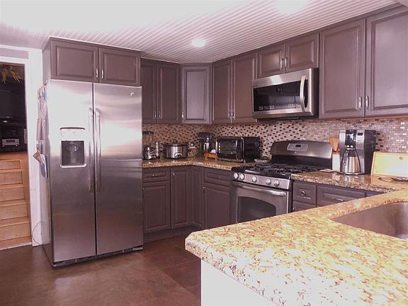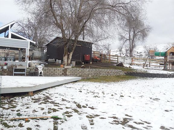 Unique Horse or 4-H property in the suburbs. Owner says they can have 2 large animals. Home is a bi-level, 3 or 4 bedrooms, 2 baths, open kitchen dining combo, upper level living room.Home has been completely updated over past 10 years, has heated tile floors in kitchen fam ding combo,tile floors, laminate and carpet in others. Beautiful kitchen with granite counters, instant hot water at sink. Very nice refrigerator, garbage disposal and dishwasher. A wonderful huge deck surrounds back of house with some of it covered. Accessible thru french doors from master bedroom. Shop has double 220 service, high ceiling and pull through roll up doors.All shelving will remain. There is a barn, other sheds, and a covered pole corral on other side of ditch Property runs to the old fence behind irrigation ditch. The roof is 4 tab comp and only a few years old.