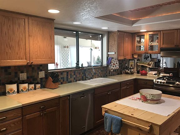 - KITCHEN: Wood Cabinets, Formica Counters, Country, Pantry, Breakfast Bar