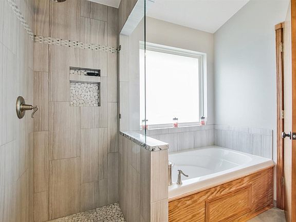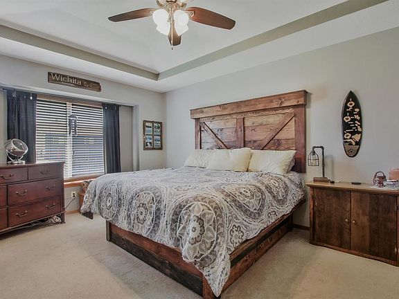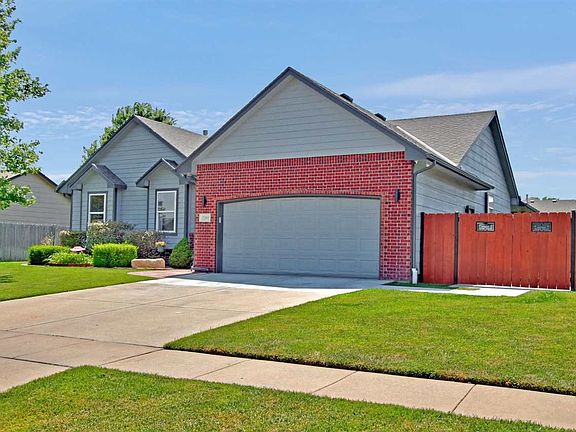Tons of updates in and out! Move right in to this wonderful West Wichita home with Goddard Schools! Large home in a newer neighborhood and NO HOA! Plush grass welcomes you to the yard and takes your eyes to the stamped walk and new siding! Walk into the large living room with vaulted ceilings (no popcorn here!), updated fireplace, new engineered wood floor, and fresh paint. Walk through the custom barn doors to the remodeled kitchen with a great new layout, pantry, concrete/epoxy counter tops, eating space, bar, and flows to the covered back patio. Huge master suite with coffered ceiling, walk in closet, UPDATED master bath with twin sinks on the concrete/epoxy top, soaker tub, tiled open shower concept, and tile floor!!!! Two more great sized bedrooms on the main floor and you guessed it - updated guest/hall bath with large tiled shower! Basement has a massive family rec room with wet bar and newer carpet. One more bedroom/bathroom completes the basement. Pricvacy fenced backyard with fantastic covered patio, attached shed, and room on the side for extra garage or outside (possible boat/RV) storage.