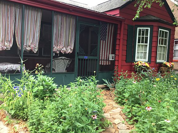 Here's your opportunity to own the cutest house on the block! This cottage-style bungalow with double enforced hardwood floors features 2 roomy bedrooms with a bathroom in between. The screened-in front porch offers a lovely space to welcome visitors. The living room features arched doorways, bay windows and a gas fireplace. The home is wide open from the front wall to the back for great light and an airy living, dining, and cooking space. The full, unfinished basement has been waterproofed and offers ample storage and laundry areas. The backyard has a darling entertainment space and room for your garden! It also features a 1.5 car garage.