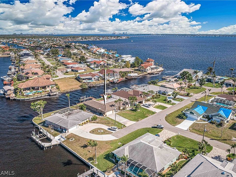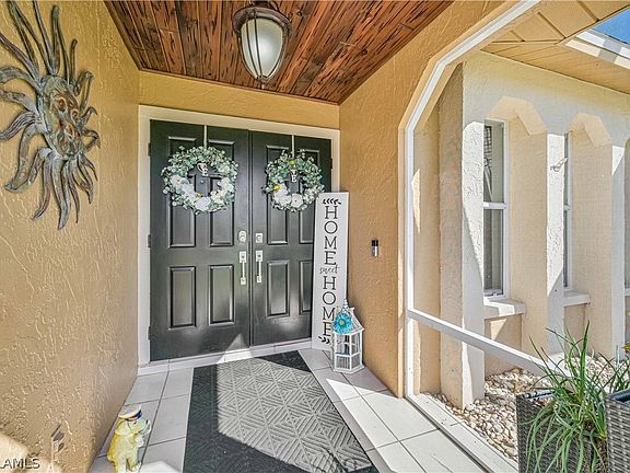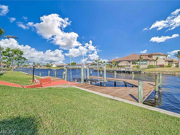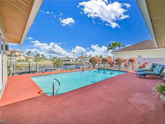 LOCATION LOCATION!!! 1 Min Boat Ride to the River!! Welcome to paradise!! Sailboat Access Pool Home in the Desirable Palaco Grande Community! This location is a boater's & fisherman's dream with just 4 houses away from the Caloosahatchee River. With a short boat ride out to the Gulf you can easily visit the areas beautiful beaches and finish off your day with a nice dinner at one of the many waterfront restaurants that SW Florida has to offer. This beautiful 3 bedroom, 2 bath home with over 2,300 sqft is situated in a quiet, family-friendly neighborhood and offers an abundance of natural light and space. The open floor plan features a modern kitchen with stainless steel appliances and plenty of cabinet space for all your cooking needs. The spacious living room has a cute coffee/wet bar and gleaming wood beams that add to the home's charm. Enjoy the beautiful outdoors with a large pool and lanai, perfect for entertaining. This home also features a 16k boat lift, new roof in 2018 and newer AC. This home had NO FLOODING from Ian. No open claims and ready to go!! If you’re looking for an amazing family home that’s move-in ready, this is it!!