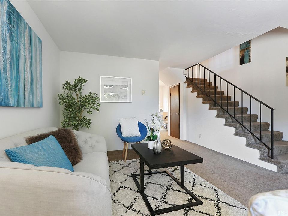Highly sought after end unit with an abundance of light and additional corner windows. Two level open floor plan with a well-kept interior featuring an updated bathroom. This highly desirable location is located within walking distance to all the cute stores, restaurants, and transportation on Park Street with additional nearby Shoreline Shopping Center & South Shore Beach. Interior features 2 bedrooms and 1 bathroom on the upper residence level. Open kitchen, living room, dining room, and additional bathroom on main level with private outdoor deck. Exclusive covered & gated parking space, storage space, and laundry facility are all just footsteps away. Prime location with a walk score of 90. Walk to Park Street, Alameda High School, Shoreline Shopping Center, South Shore Beach, and nearby public transportation.