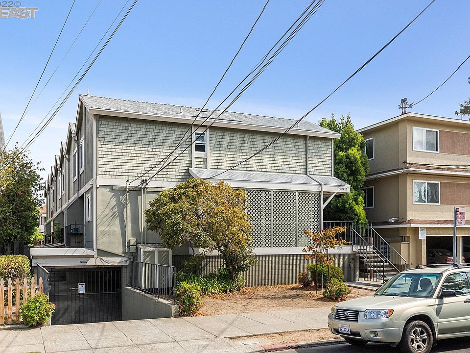 Large & Lovely 2 Bedrooms, 1.5 Baths, 2 secure parking spaces and more! This lovely townhouse style condo is nestled in the heart of Alameda—only two blocks from Park Street. It boasts two spacious bedrooms and a main floor powder room; and completely upgraded kitchen and baths including upgraded electrical panels, new appliances, cabinets and window coverings! This peaceful and private home has lovely vaulted and beamed ceilings in both bedrooms, and a galley kitchen with an eating space. The charming deck off the deck brings the afternoon breeze in. 2205 San Antonio is a small, well-maintained building with No HOA rental restriction. Sq Ft of Home is from Open Homes, and differs from Public Records There are two premium parking places, in the secure gated parking area—a real bonus in this busy and charming neighborhood! Enjoy beach, bus access and all that Alameda has to offer; including trails for biking and more—three ferry terminals, shuttles and buses to BART, and easy access to the Oakland Airport . Open House Sunday 2-4