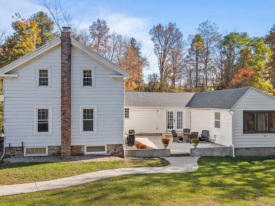 Step into the charm of history with Hydrangea House, captivating Eyebrow Colonial, seamlessly blending country Farmhouse allure with modern elegance nestled on 1.09 acres. This 2300-square-foot jewel boasts 3 bedrooms and 2 full baths, plus a large 550-square-foot studio embodying a perfect balance of vintage allure and contemporary comfort. Enter the heart of the home: a new oversized country kitchen with an adjacent dining area, leading to a spacious family room and a versatile office/den. The main floor offers flexible spaces, with the added bonus of a laundry room in place of the third bathroom. A generous studio addition opens doors to endless possibilities - whether it's a home-based business, a yoga sanctuary, or an art studio, this space is ready for your vision. It opens to a courtyard with flower beds. Original wide-board pine floors grace the bedrooms upstairs, preserving the historic charm. Enjoy the ambiance of a bygone era with ample ceiling height, reflecting the grandeur of the past. New windows illuminate the interiors with natural light and offer picturesque views of the serene bubbling stream. The home has seen thoughtful upgrades, including a new roof, updated electric and plumbing, and a new septic and leach field. The canvas is primed, awaiting your creative touch to add the finishing strokes. With Chatham Schools nearby and just 2 hours from NYC, make it your own slice of paradise.